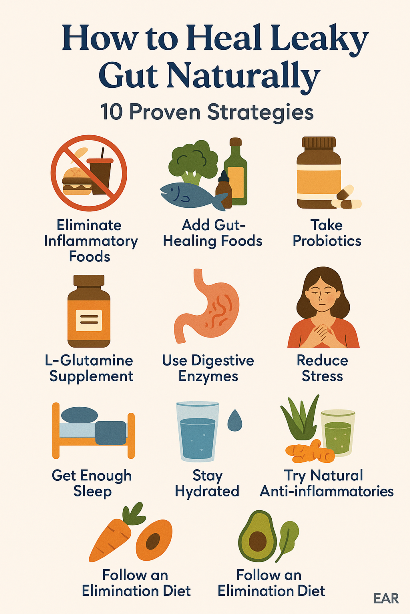 An elimination diet is one of the most effective natural strategies to heal leaky gut. It helps uncover food sensitivities that may be silently damaging your gut lining and causing inflammation, bloating, or skin issues.